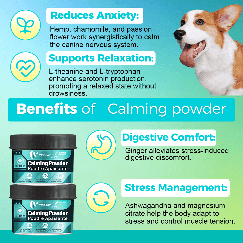 Introducing Soothing Paws Herbal Blend, a calming powder specially crafted to maintain tranquility in canines during high-stress situations such as thunderstorms, travel, or separation anxiety. This unique blend combines natural ingredients known for their calming effects on the canine nervous system, promoting relaxation and reducing stress.