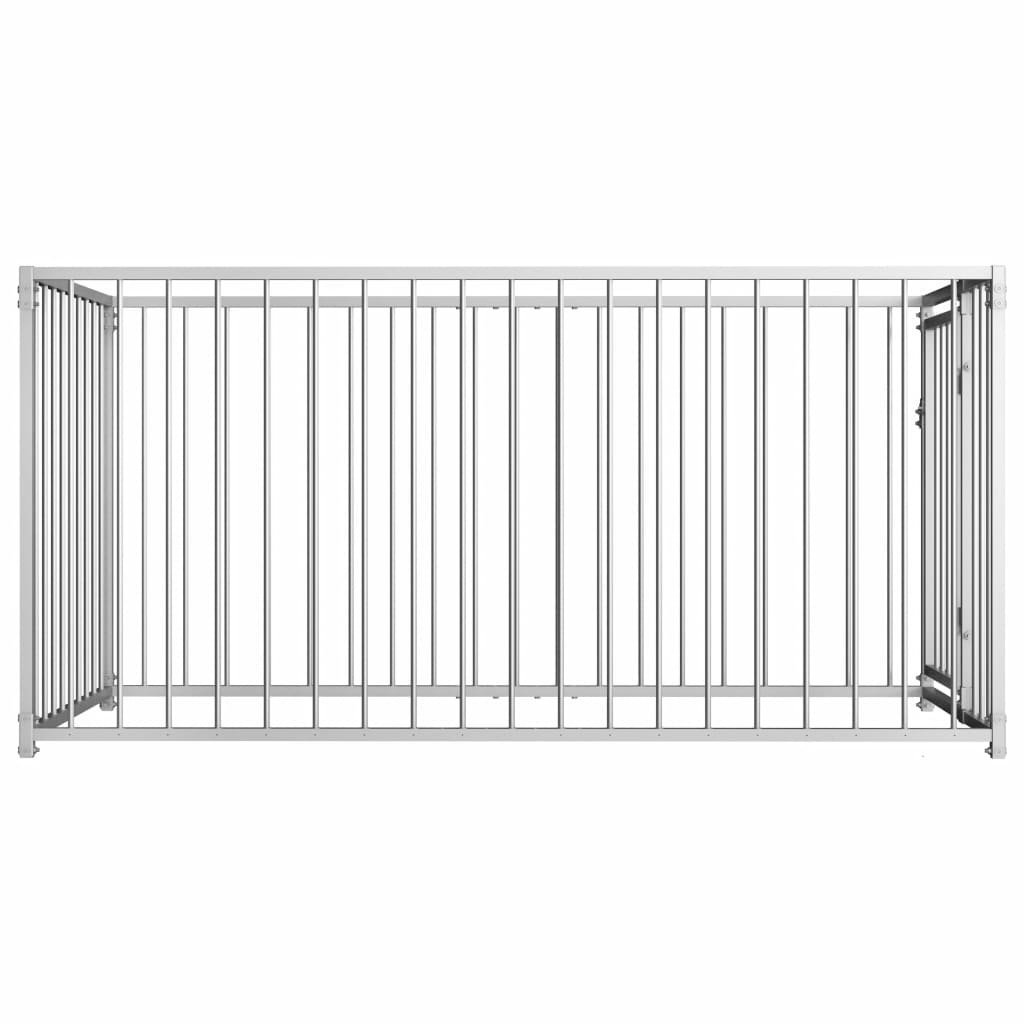 This versatile; heavy-duty dog house features multiple uses: playing; exercising; training; or simply keeping your dog safe. It will be the perfect play paradise for your furry friends! This kennel provides ample exercise space while the steel bar walls help prevent mischief and unexpected accidents while enabling ventilation. Thanks to the sturdy steel construction; this quality dog kennel is durable and built to last. Additionally; the hinged door has a lockable latch system which ensures extra security and safety for your dogs. This kennel is easy to assemble. Please note that the door can be installed on the left or right side; which depends on your own needs.